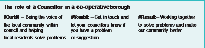 - Being an advocate for local residents and signposting them to the right people at the council.